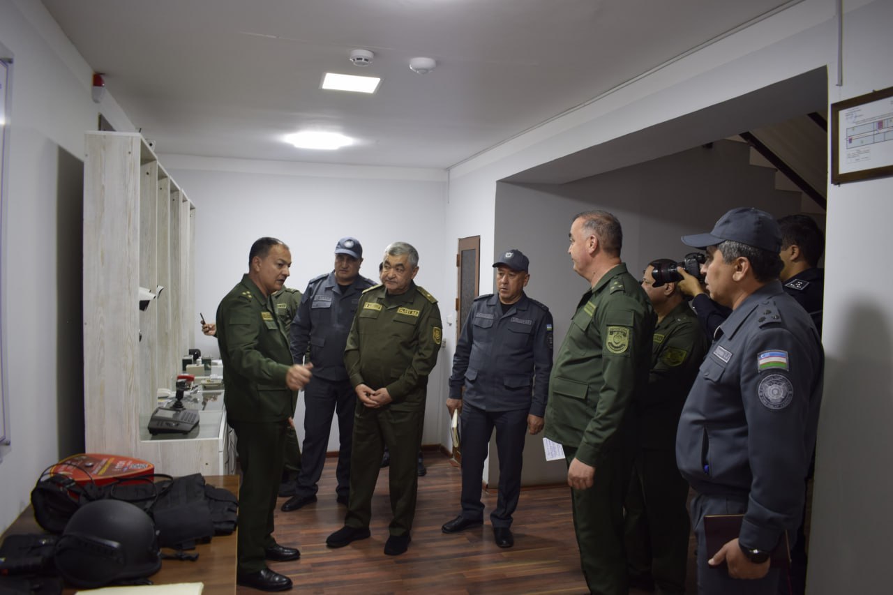 Xususan, ishchi guruh tomonidan viloyat Qo‘riqlash boshqarmasida qo‘riqlash va tezkor harakatlanuvchi guruhlarning faoliyati o‘rganildi.